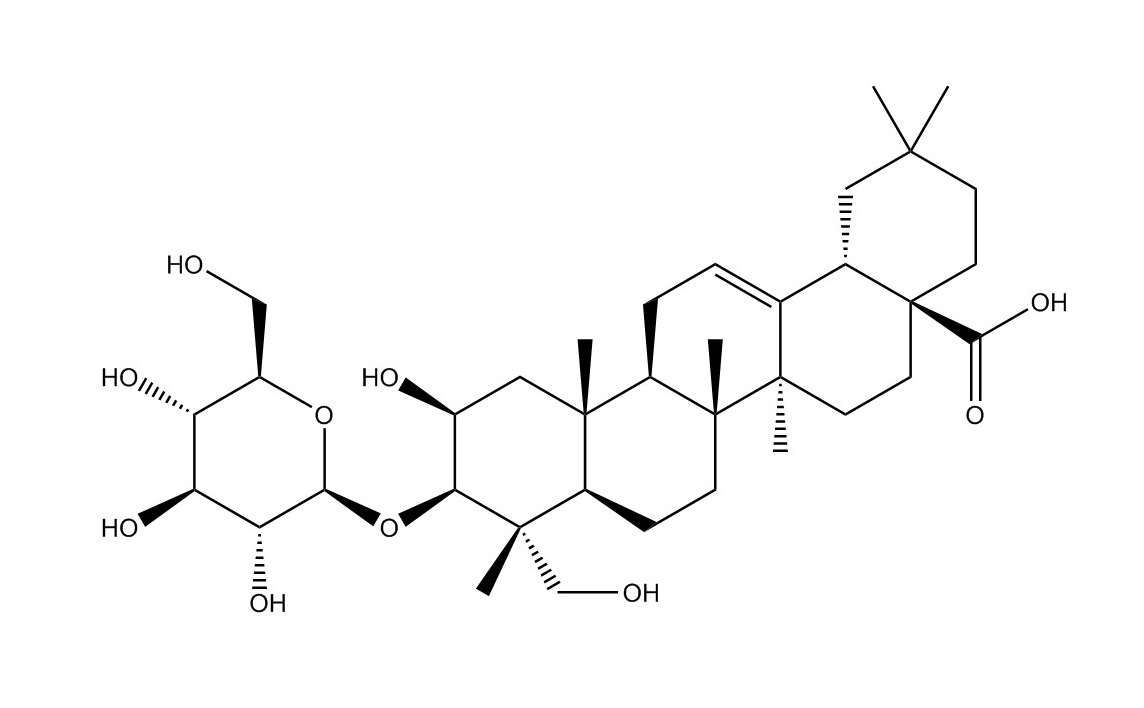 【英文別稱】 (2beta,3beta,4alpha)-3-(beta-D-Glucopyranosyloxy)-2,23-dihydroxy-olean-12-en-28-oic acid